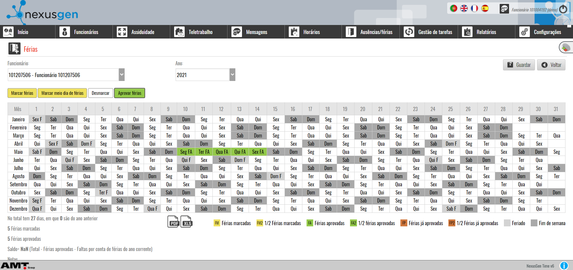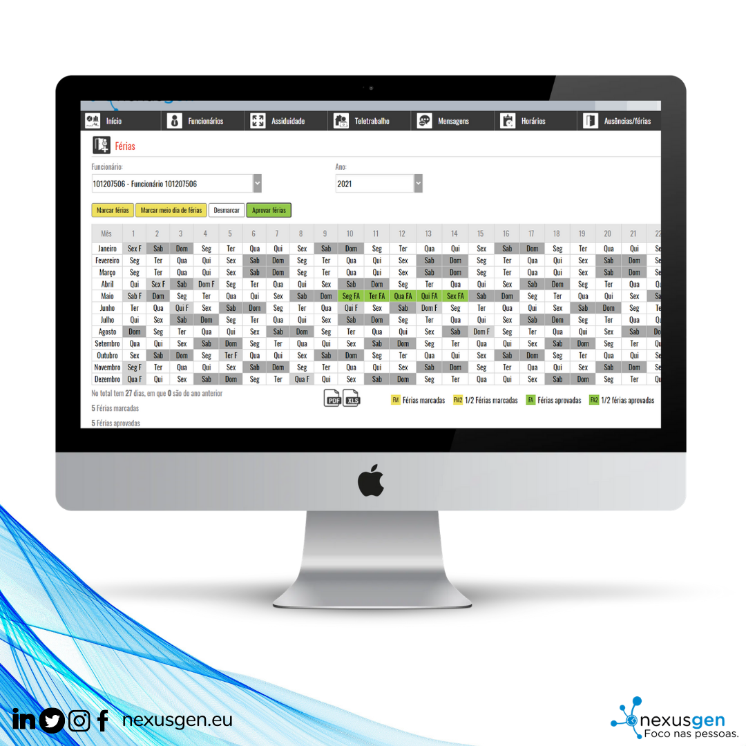 No NexusGen Time , attendance management is done in a simple, intuitive and fast way. In addition to the possibility for employees to book their vacation (requiring approval by the upper management), Human Resources or administration can approve employees' vacations by departments or groups, for more effective management.