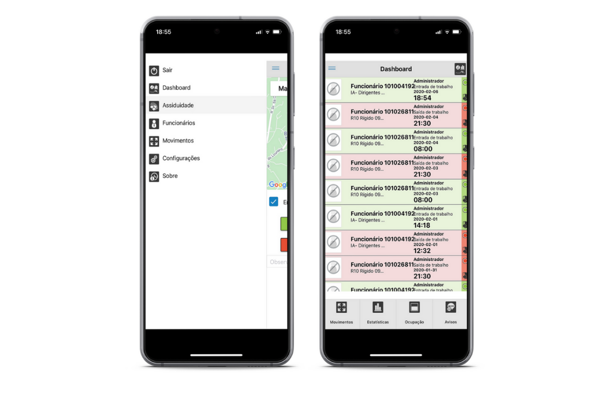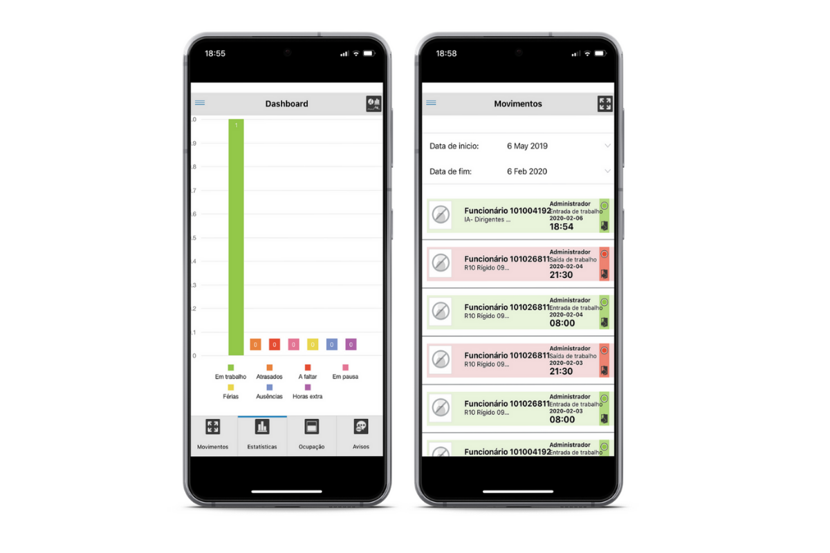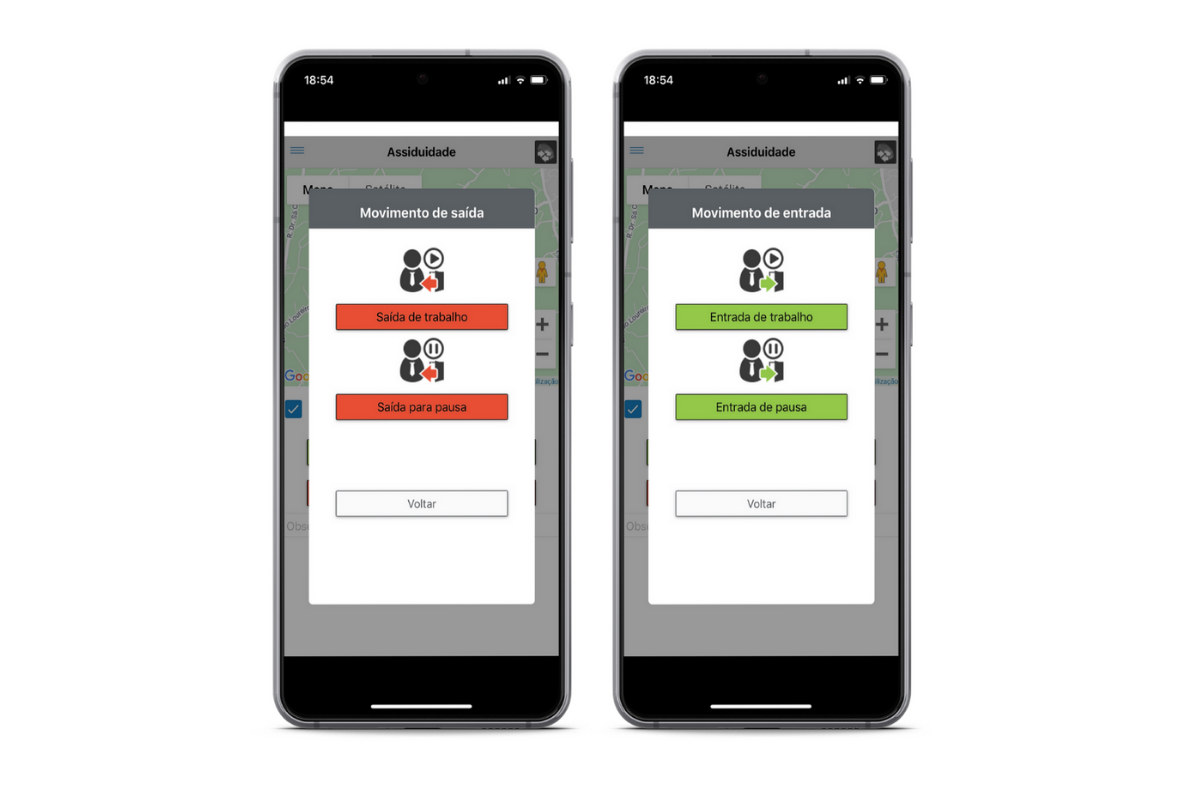 In addition to this functionality, it is also possible to determine "chipping zones" where the geographical area where the employee can register attendance is determined. For example: if an employee is only authorized to register in the city of Braga, and tries to "enter work" in the city of Aveiro, the application will not accept that entry to work.